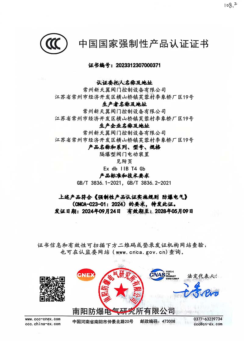 隔爆型DZB 中國國家強制性產品認證證書108.2