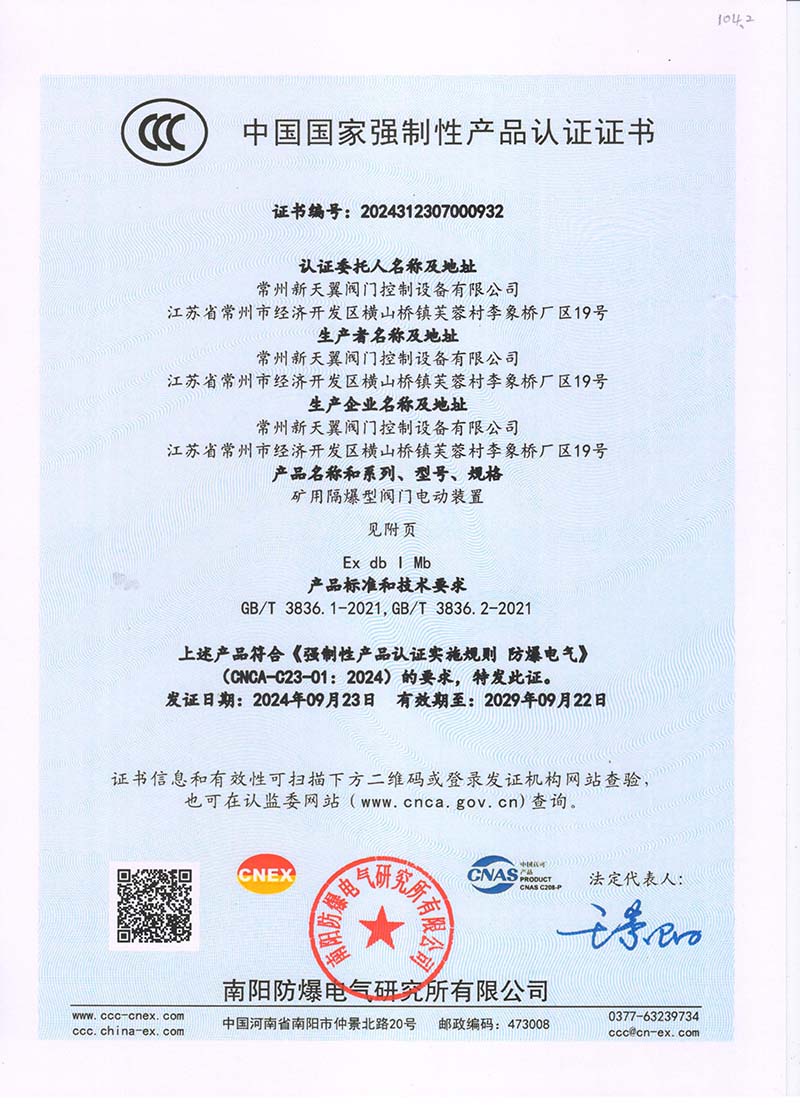 隔爆控制箱 中國國家強制性產品認證證書111.2